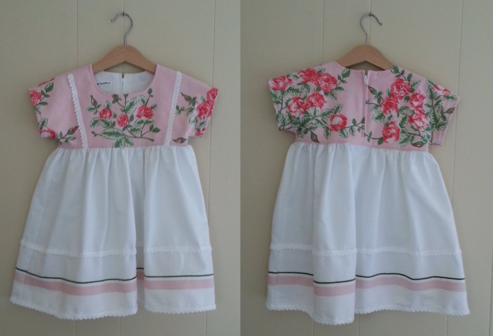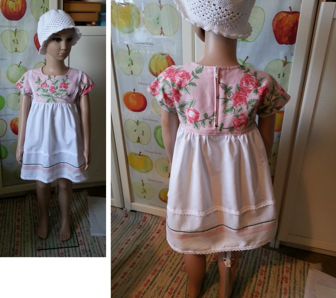 klänning av en återanvänd duk. Kjoltyget är nytt.