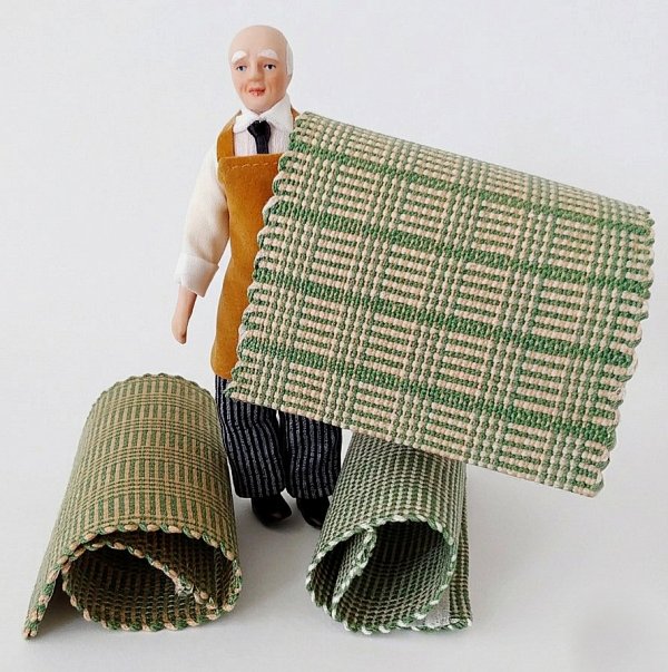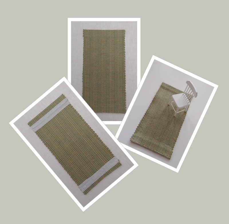 Här är tre grönmönstrade mattor till