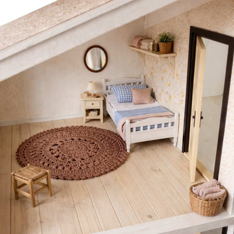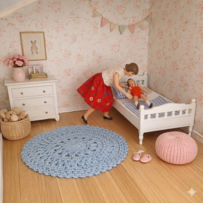 och mattan är "verkliga", dockskåpet de