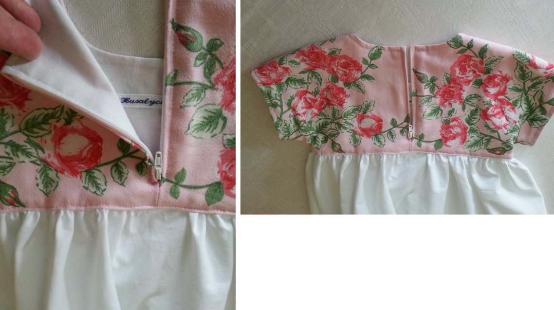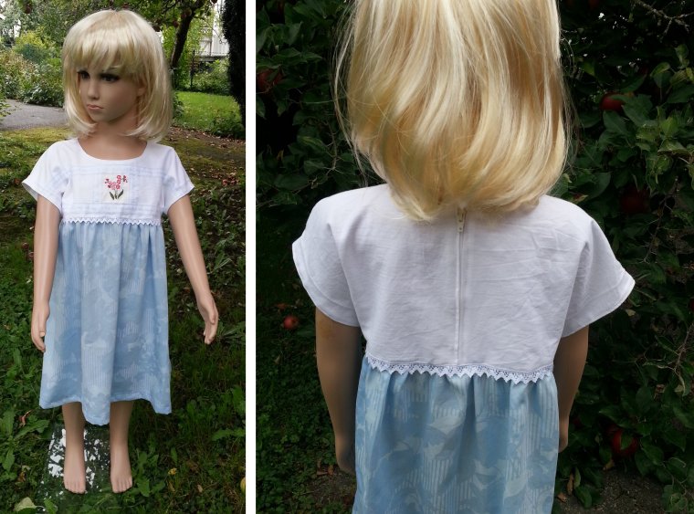 klänning av en återanvänd duk. Kjoltyget är nytt.